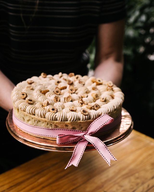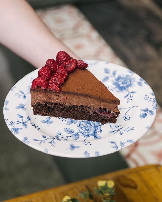 Ahora bien, definitivamente entre los imperdibles de Lardo se encuentran los postres, que parecen sacados directo de un cuento de hadas para consentir cada uno de los sentidos y echar a andar la producción de serotonina y endorfinas. Y es que si juntas la delicia que son los pasteles y tartas de este lugar con la decoración cottage core, realmente sentirás que entraste a un cuento de Hans Christian Andersen. Además de algunos éxitos infalibles —que puedes pedir también completos para causar sensación en tus reuniones— como el pastel de avellanas, cuentan con opciones libres de productos animales, como el pastel vegano de chocolate.