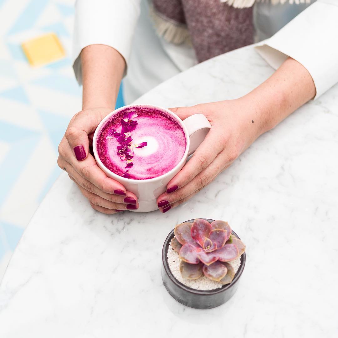 Sin duda, uno de los lattes con mayor tendencia en redes sociales es el pink o beet latte. Obtiene su coloración de forma natural ya que está hecho a base de betabel. Entre sus beneficios destacan la disminución de presión sanguínea, el alto contenido de fibra dietética y la aportación de Omega 3. En Épice lo preparan con jengibre por lo que tiene un toque único. Además, el lugar es tan bonito que será el setting ideal para tus fotos.