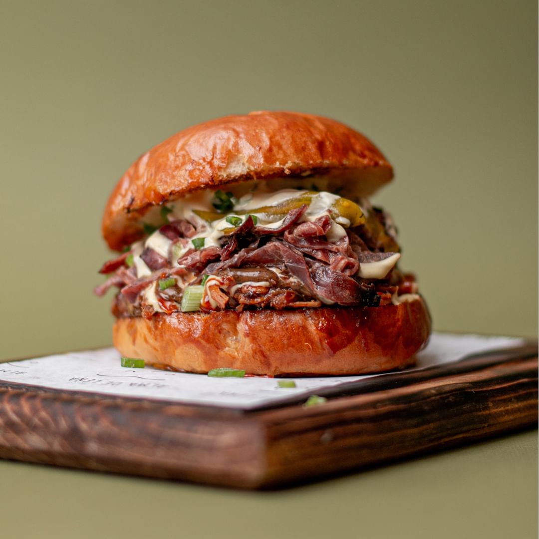 Pero uno de los imperdibles de su menú son las hamburguesas, empezando por la Burger de Brisket —con ensalada de col, mayonesa de cenizas de habanero, queso cheddar, dijon y pepinillos hechos en casa—, pasando por la Burger de Pulled Pork y la Burger de Pollo Crujiente —con mayonesa de cenizas de chile chipotle, salsa tártara, shirasha, aguacate, arúgula y queso cheddar—, y finalmente, la Leudo Burger —con carne molida de Sirloin, tocino, queso Monterrey, cebolla caramelizada, BBQ, arúgula, pepinillos hechos en casa y dijon—.