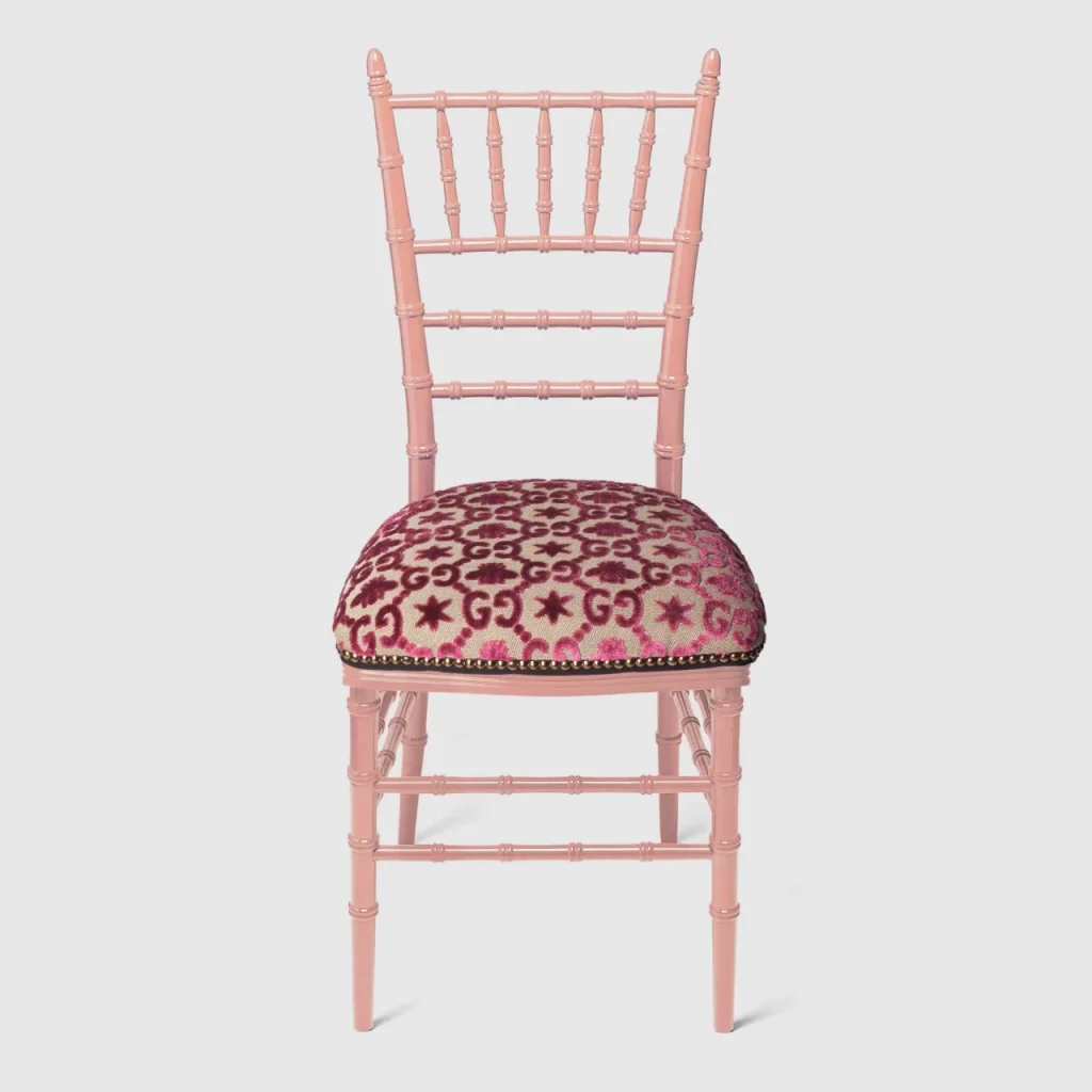 Si amas los patrones florales y los diseños suntuosos de Gucci, entonces amarás su colección de decoración de interiores. La combinación ecléctica de símbolos tradicionales y códigos contemporáneos característica de la firma se convierte en papeles tapiz alocados y sofisticados, sillas y taburetes de jacquard, cajitas musicales, vajillas, cubertería, cristalería y demás accesorios de decoración y ocio con el sello de la marca.
