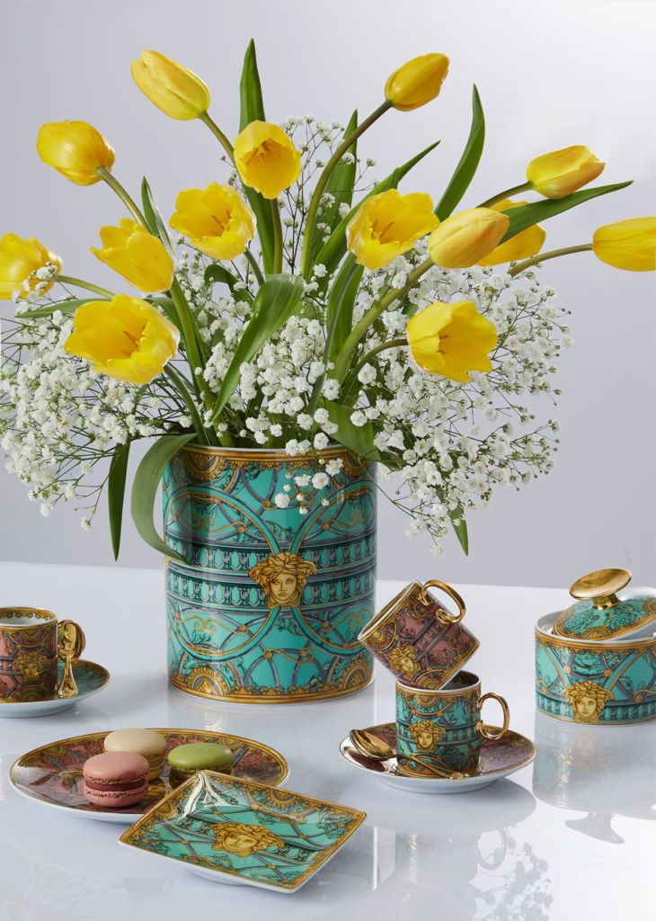 Esta marca se caracteriza por llevar al límite los patrones alocados, los colores brillantes y la imaginería grecolatina para crear un estilo inconfundible. Si lo que estás buscando es un estilo que haga que la gente voltee a verte, Versace es la opción, y esto no cambia con su línea para el hogar. Sin perder en ningún momento la elegancia, la paleta cromática es extensa, desde cojines de un negro profundo con detalles en dorado, hasta vajillas rosas y azules que le dan muchísimo protagonismo a cualquier mesa.