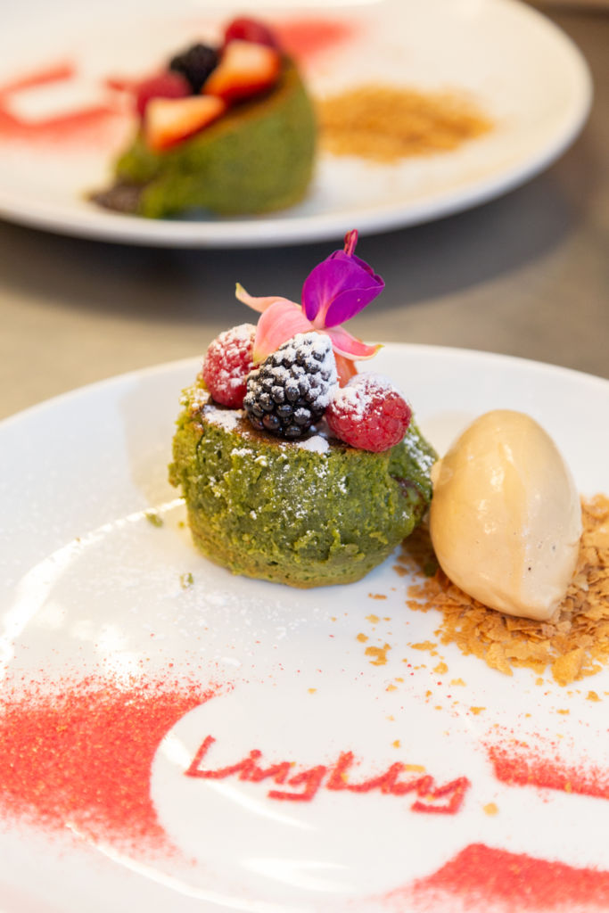 Si pensabas que los tres primeros platillos suenan delicioso, espera a escuchar sobre el dulce final de esta colaboración: de postre, el Ling Ling Fondant —con fondant de matcha y ganache de chocolate oscuro, servido con frutos rojos y helado de café— acompañado de el cóctel más goloso, el Gossip Frappé —con vodka, rumchata, licor de café y café Ristreto intenso—.
