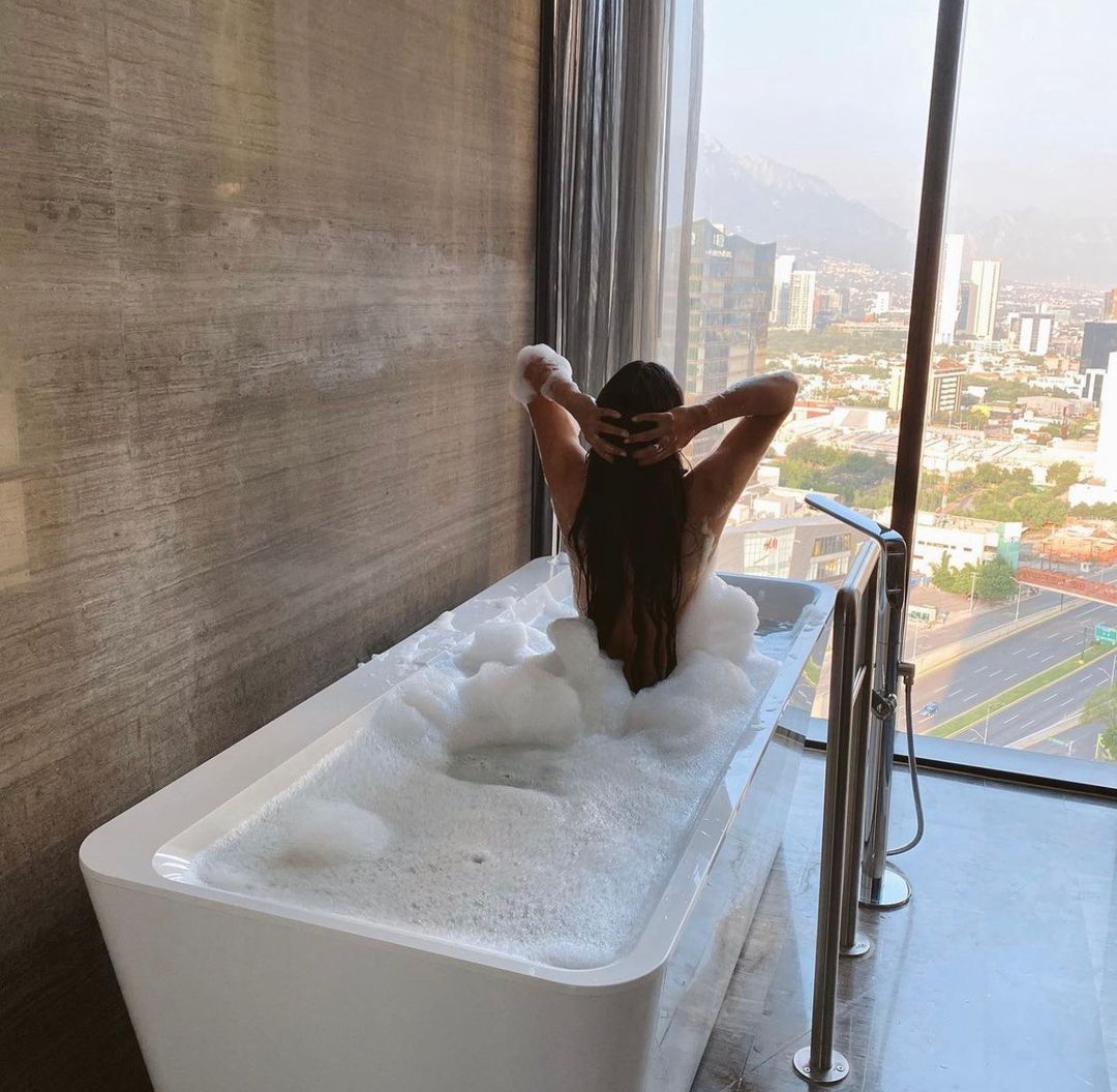 Lo primero que notarás al entrar a Live Aqua —además de las líneas limpias y contemporáneas de la decoración— serán los inmensos ventanales por los que se aprecian las panorámicas más apabullantes de Monterrey. A pesar de encontrarse en pleno distrito financiero, este resort es un santuario en el que reina la tranquilidad. Las habitaciones están equipadas con todas las comodidades para asegurar un descanso como en ningún otro lado, no solo por el colchón, las almohadas y las sábanas de lujo, sino también por los kits de aromaterapia y la bañera justo frente a los ventanales con las vistas a los atardeceres y a la ciudad iluminada por la noche.