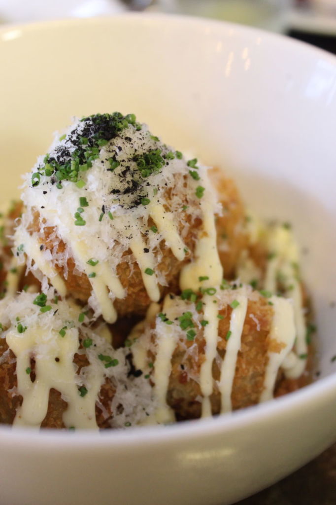 Para comer, existe un menú ejecutivo – a precio de amigo – que incluye agua del día, entrada, plato principal y postre. Si quieres pedir a la carta, te recomendamos comenzar compartiendo platos al centro de la mesa. Su porchetta fría con encurtidos y pan casero es una excelente opción, marinada con aceite de aceitunas que le da un especial sabor añejo. También puedes probar sus arancinis de calabaza con alioli y parmesano, servidos sobre un suave romesco de pimiento morrón rostizado y con un exquisito toque de casa italiana.