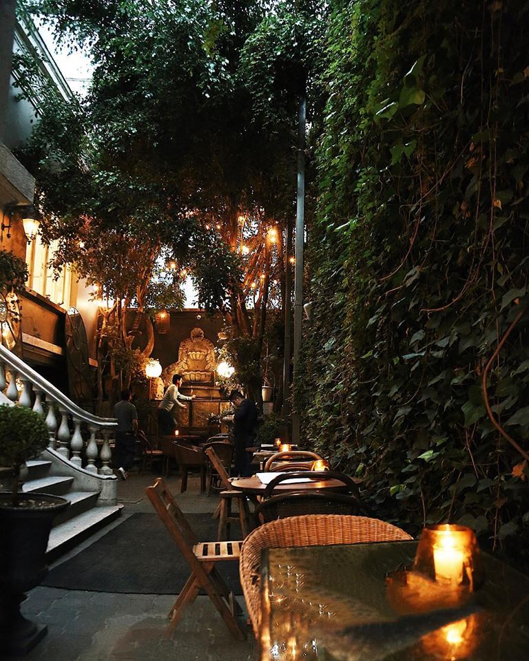 Para llegar al jardín de este extraordinario restaurante francés con acentos mexicanos, necesitarás caminar por un hermoso pasillo iluminado dentro de una bella y elegante casona que te llevará a una terraza con las mejores vistas al espacio exterior. Sus bellas mesas, su amplia carta de vinos y su vegetación te harán sentir de vacaciones sin salir de la capital.