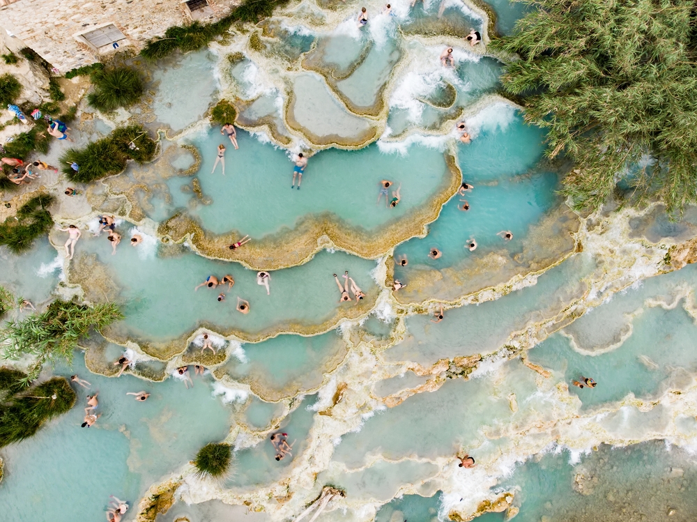 Otro de los lugares con aguas termales más hermosos del mundo son las Termas Saturnia de Italia. Situadas en la Toscana, uno de los destinos más culturales y gastronómicos del país, estas aguas termales de formación natural son un imperdible para cualquier viajero. El origen de estas hermosas aguas termales, es un riachuelo que nace del volcán extinto Monte Amiata, a espaldas del balneario.