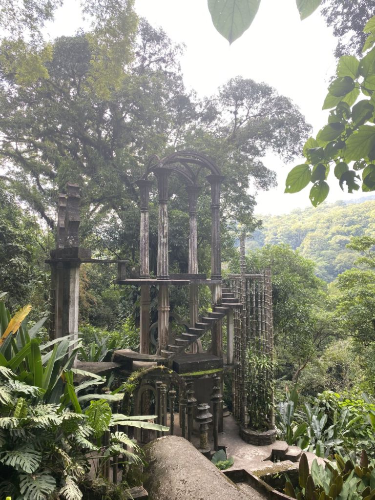 Es un mundo de fantasía artística carente de reglas y lógica: escaleras y puertas que no llevan a ningún lado, esculturas de flores que acompañan a la vegetación, en contraste con arcos invertidos. Sentirás que estás en un loco e irracional sueño.