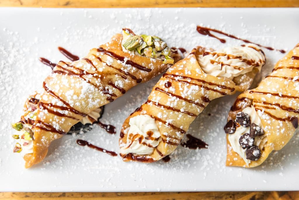 Al finalizar, si aún tienes apetito de algo dulce, prueba su riquísima pizza S’mores, una bomba con chocolate, malvaviscos derretidos, galletas espolvoreadas y una bola de helado de vainilla. Si prefieres algo más pequeño también puedes pedir la Trilogía de cannoli, tubos de masa crujiente típica italiana, con tres rellenos cremosos: chispas, pistache y natural. Los amarás.