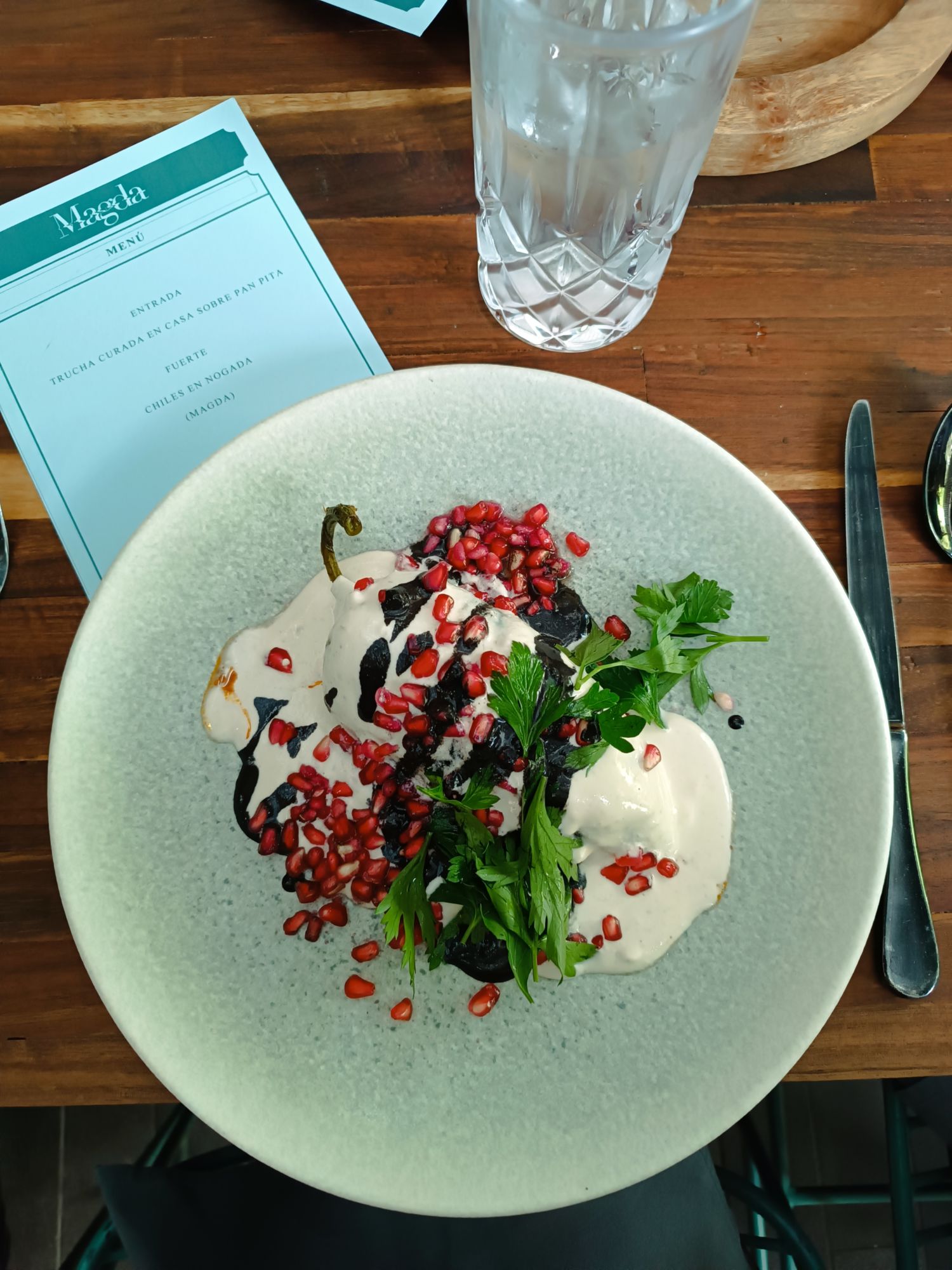 Todos conocemos ―y estamos enamorados― de la receta ‘clásica’ de chiles en nogada; sin embargo, lo mejor de la cocina es que siempre puede reinventarse o combinarse para crear algo tan tradicional como innovador. Y este es justo el caso de los chiles en nogada de Magda que, aunque apenas empieza, pintan para ser unos de los mejores de esta temporada en la CDMX. La mejor parte es que, además de este delicioso platillo de temporada, en Magda vas a disfrutar de toda una experiencia gastronómica que te cautivará en todos los sentidos. Empezado por el estilo y el diseño ―a cargo de Ricardo Casas― que llenan de vida el espacio y crean una atmosfera tan agradable como instagrameable.