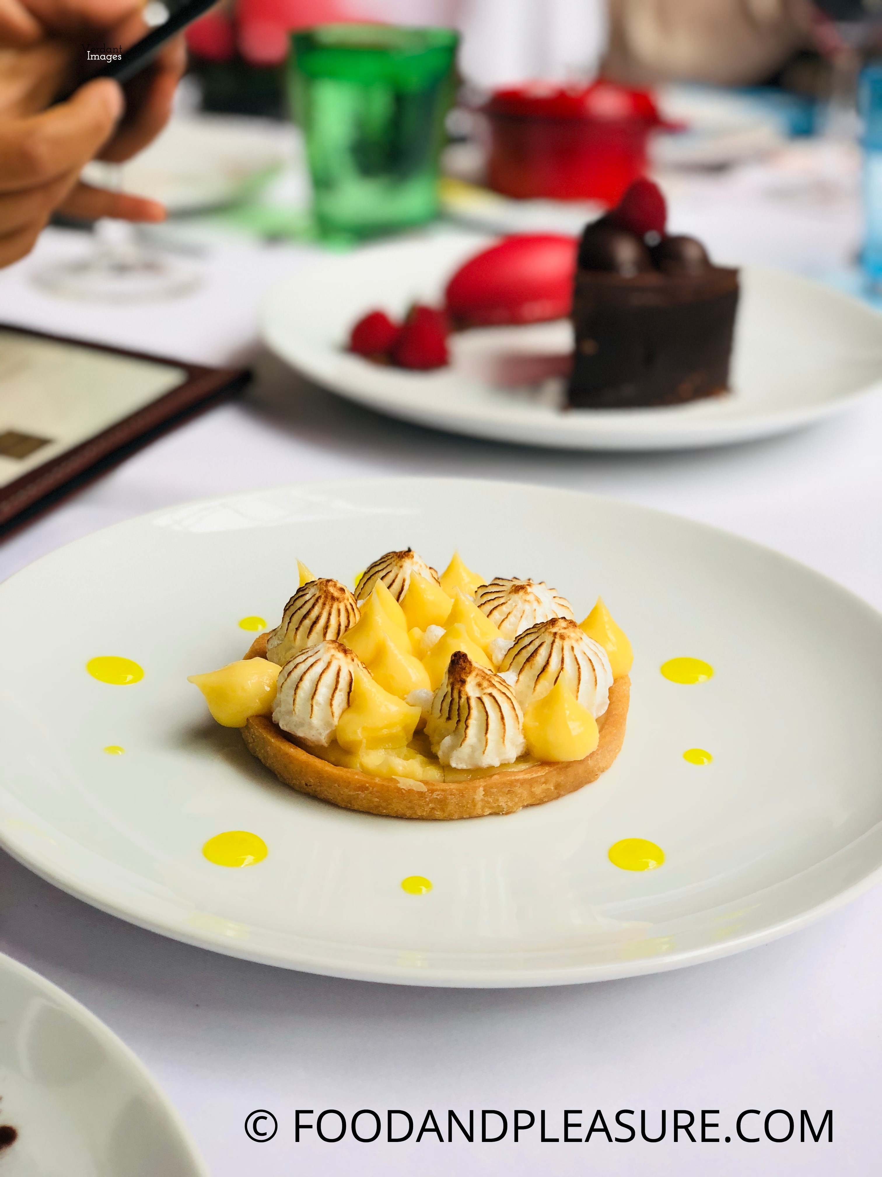 Durante tu visita, asegúrate de guardar espacio para el postre, pues todas las opciones son una delicia. Nosotros te recomendamos la tartalera de limón y merengue, el crujiente de avellanas de siempre y el mousse de chocolate obscuro, «langue de chat» (lengua de gato).