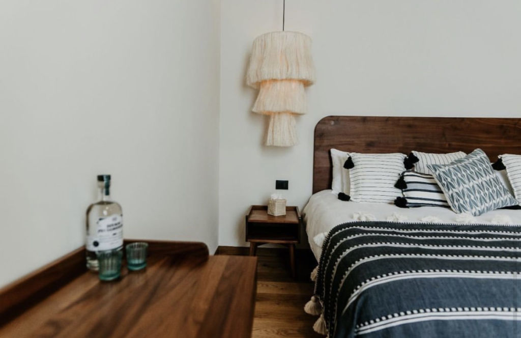 Las 14 habitaciones de Majagua se encuentran distribuidas en dos plantas, que a su vez muestran un espacio lleno de serenidad en tonos blancos, con pequeños detalles de color entre las artesanías locales que adornan el lugar. Sus matices claros colmados de luz natural y sus amplios ventanales hacen que este hotel sea uno de los más hermosos del centro de Oaxaca. Los textiles, el mobiliario y las lámparas fueron traídas de Asia, complementándose de piezas como el tivichi —cojín con forma de animal elaborado en el Valle de Oaxaca— que muestran la belleza de las artesanías de lujo del estado.