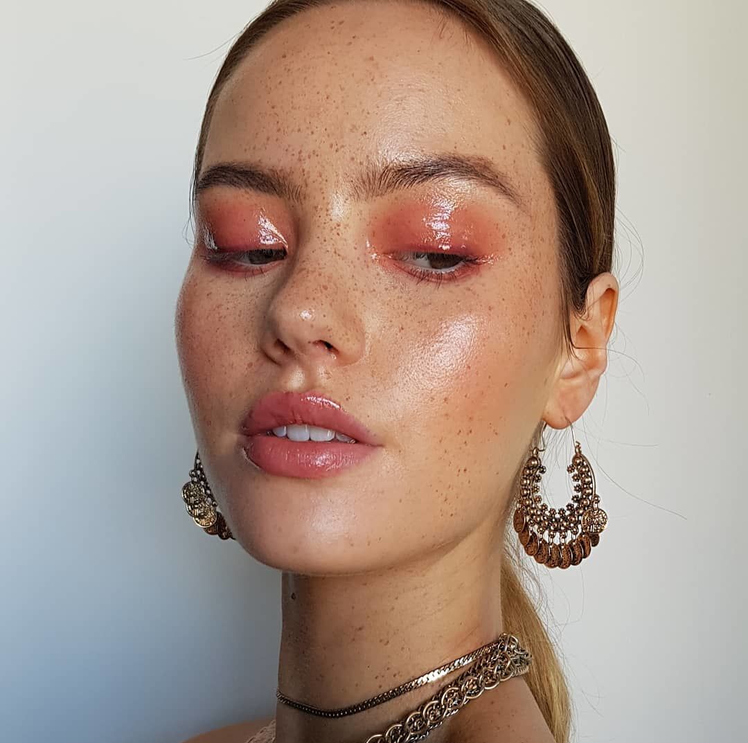 La forma más fácil de crear este look es con un gloss de labios seguro para usarse también en los ojos, de preferencia completamente transparente para tener la posibilidad de combinarlo con sombras de diversos colores. Se sugiere optar por un gloss de textura más pegajosa, esto para que no se derrame por el borde de los ojos y se mantenga impecable por un periodo prolongado de tiempo; se puede aplicar únicamente el gloss por encima del párpado, o bien en conjunto con una sombra de ojos colorida para quienes busquen un look más divertido.