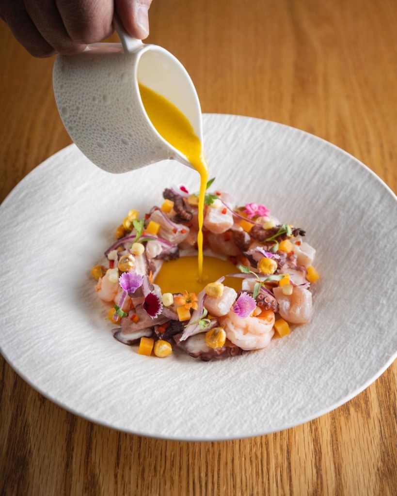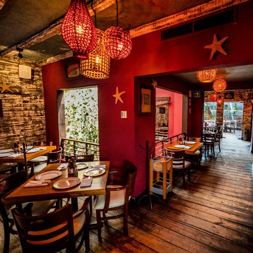 A cargo del chef Rodrigo Estrada, Agua y Sal es uno de los restaurantes de mariscos en Polanco cuya propuesta privilegia la pesca sostenible y el producto de temporada, ofreciendo un menú especializado en cebiches y platos peruanos. Te recomendamos probar su Cebiche Tropical, preparado con camarón y mango en salsa de chile cuaresmeño, cebolla morada, cilantro, cacahuate y aceite de ajonjolí; su pulpo a la parrilla sobre papitas y pimientos también es delicioso.