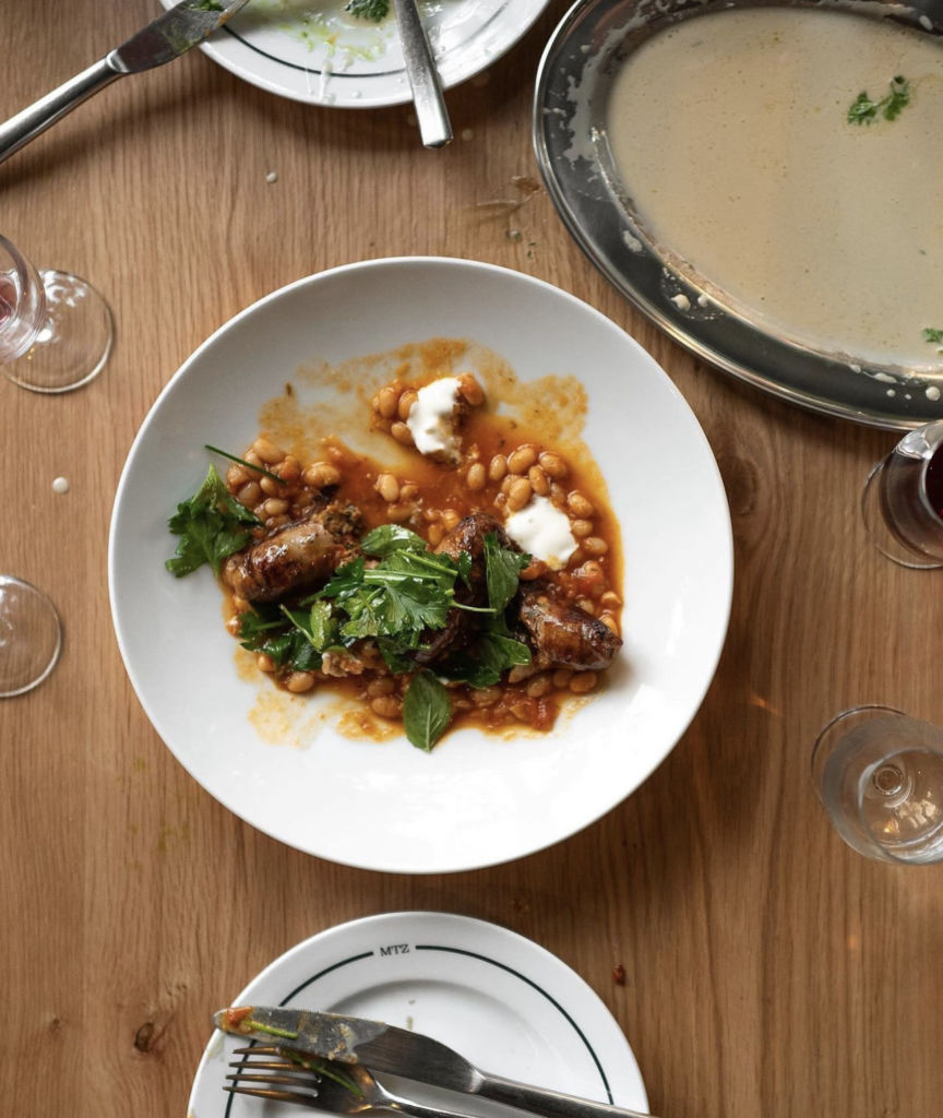 Y justo eso es lo que hace tan perfectos los proyectos de este joven chef, nunca sabes qué llegará a tu mesa. Otro plato que sorprende son sus salchichas Merguez —un embutido de origen africano, que es muy popular en Francia, elaborado con cordero y especias— aunque estamos seguro que el chef, tiene una receta muy especial. Este plato va acompañado de frijoles, yogurt y hierbas.