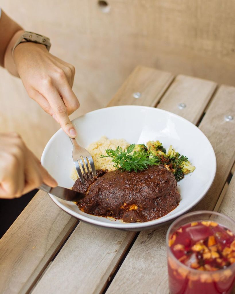 Los platos fuertes no se quedan atrás, y si creías que la vara estaba alta con los desayunos, los tacos de short rib te volarán la cabeza con su carne ultra suave y jugosa que se desbarata en la boca sin oponer resistencia alguna. Si te vuelve tan locx como a nosotras, también puedes encontrar esta delicia en formato sándwich (con pan de la casa, obvio). Si lo tuyo son los pescados, las tapas de salmón gravlax, montadas sobre pan de centeno, son un viaje a la playa en cada mordida. Para quienes buscan un sabor más a hogar, la pechuga de pollo en salsa romesco es un apapacho que te remitirá a los días más felices en la cocina de tu abuela.