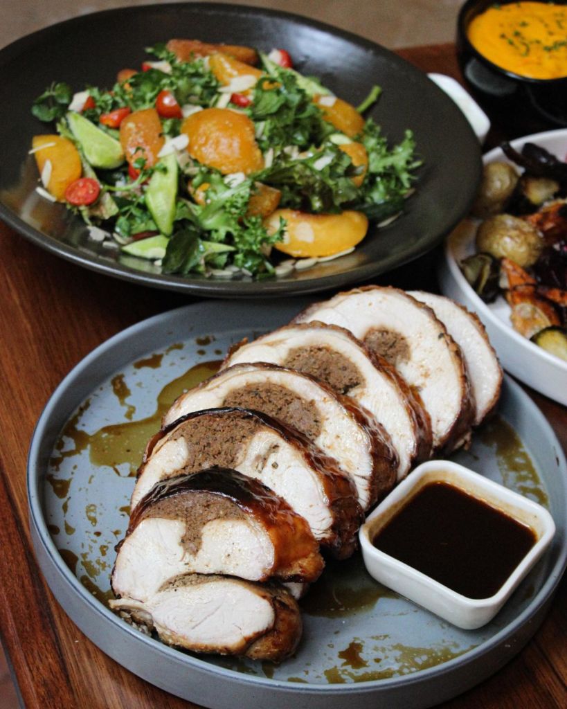 El menú navideño de Sonia incluye deliciosas guarniciones – como verduras rostizadas, puré de camote y ensalada de duraznos -, al igual que dos opciones de platos fuertes. Una es su Nueva York – 1 kg – maridado con romero y horneado a baja temperatura, la otra su pechuga de pavo confitada con salsa de frutos secos; ambas pensadas para servir entre 4-5 personas aproximadamente.