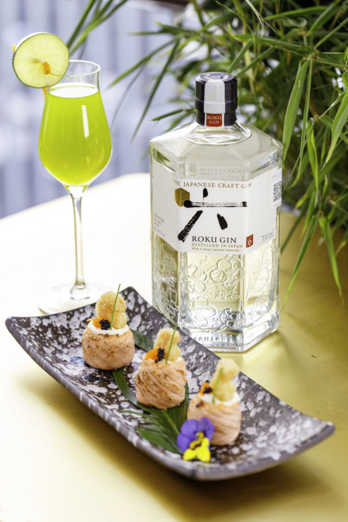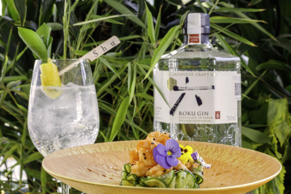 Roku Gin es una ginebra japonesa elaborada a partir de seis botánicos naturales de suma importancia en Japón, que a su vez se cosechan durante momentos específicos de cada estación, brindándole un carácter dulce de notas cítricas y esencias herbales. Para honrar esta temporalidad, forma parte de dos menús de verano disponibles en los restaurantes Suntory y Shu