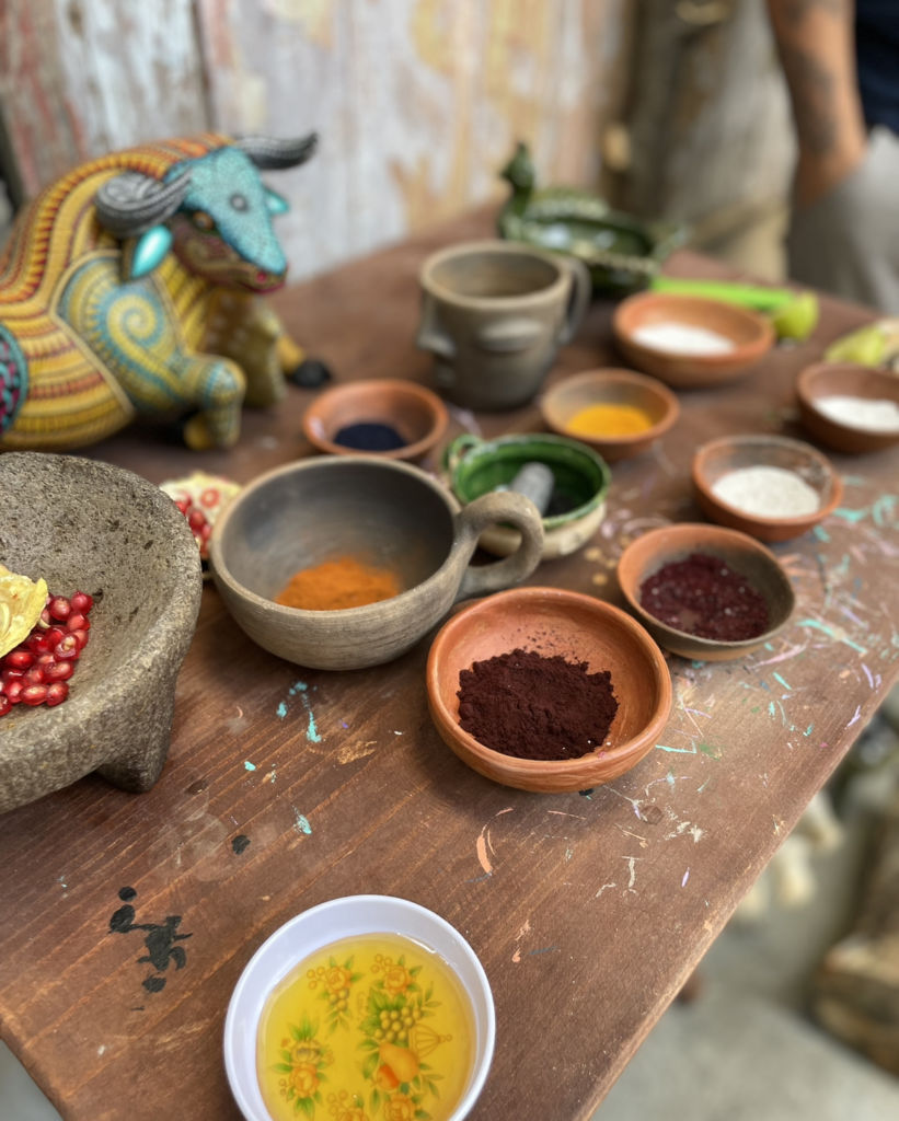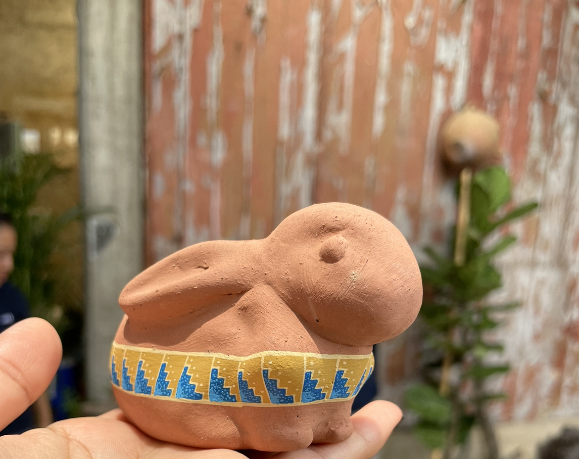 Algunas de estas piezas elaboradas a mano llegan a tardar hasta tres años en su elaboración, esto debido al secado de la madera. Es por eso que 400 Conejos decidió hacer una colaboración con Olivia Cerámica, quien se encarga de hacer unos mezcaleros en forma de conejo que van esmaltados por dentro, pero que por fuera dejan el barro fresco para que los artesanos hagan su hermoso diseño pintado a pulso.