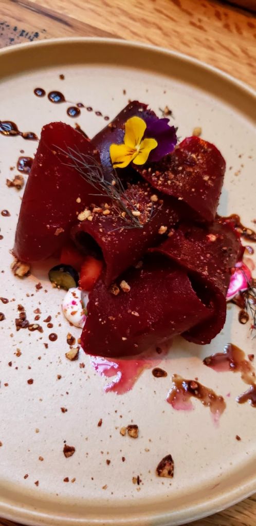 Para continuar, lo ideal será una ensalada de betabel con yogurt griego, moras y aceto balsámico. El balance de la dulzura y acidez van perfecto con un Chardonnay que haya pasado por barrica. Al visitar Domenicca no dejes de conocer su cava, tiene condiciones ideales para la óptima conservación de sus vinos.