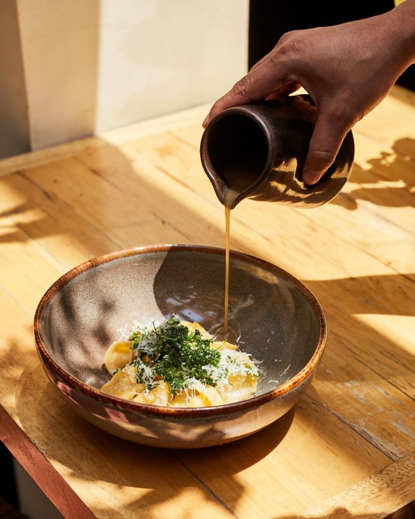 Un elemento clave de un gran restaurante son sus salsas y sus fondos. Esto lo demuestra Domenicca con sus tortellini de chirivía (una hortaliza similar a la zanahoria) in brodo, terminados con perejil frito. Es un juego de texturas en tu paladar.