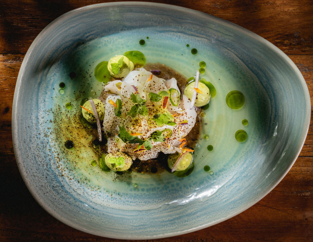 Como entrada te recomendamos probar el aguachile de camarón, cilantro, manzana verde y menta; el cremoso ravioli de hongos con sopa de foie gras y jamón serrano también es excelente opción. En cuanto a platos fuertes las sugerencias son el Risotto Frutti Di Mare, el Robalo a baja temperatura servido con un falso risotto de hinojo y cremoso de papa, y el Short rib cocido a baja temperatura con mole negro oaxaqueño, puré de plátano macho y mezcal. ¡Todos son una delicia!