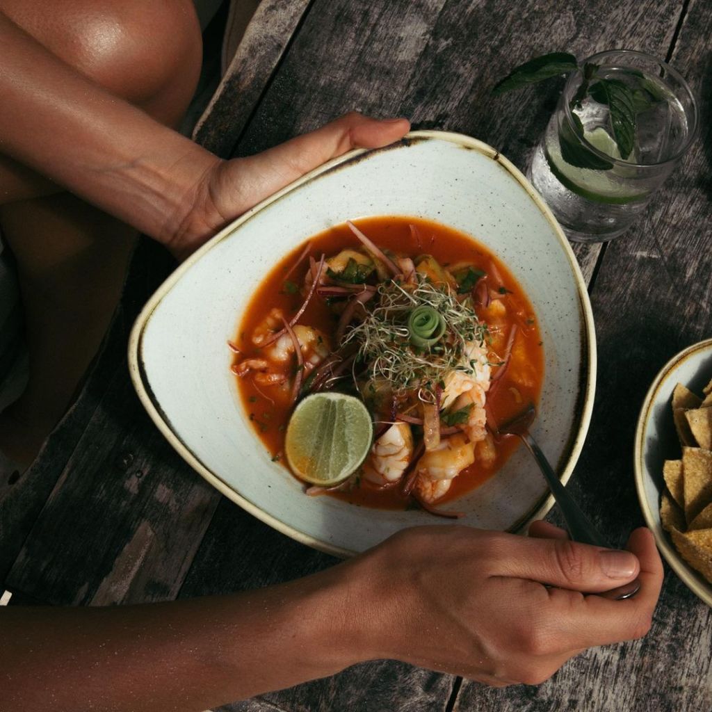 Si de tomar el sol y disfrutar la playa se trata, la mejor opción es visitar el beach club –abierto de 10:00am a 7:00pm–, en el cual se puede optar por descubrir la mixología de la casa –pregunta por el coctel del día– o pedir una buena cerveza artesanal. Si el hambre se hace presente después de refrescarte en el agua, el lugar cuenta con un lunch menu en el que encontrarás opciones frescas como su ceviche verde, aguachile rojo de camarón, tiradito de atún, tacos, hamburguesas, ensaladas y más. Será un goce total frente al mar.