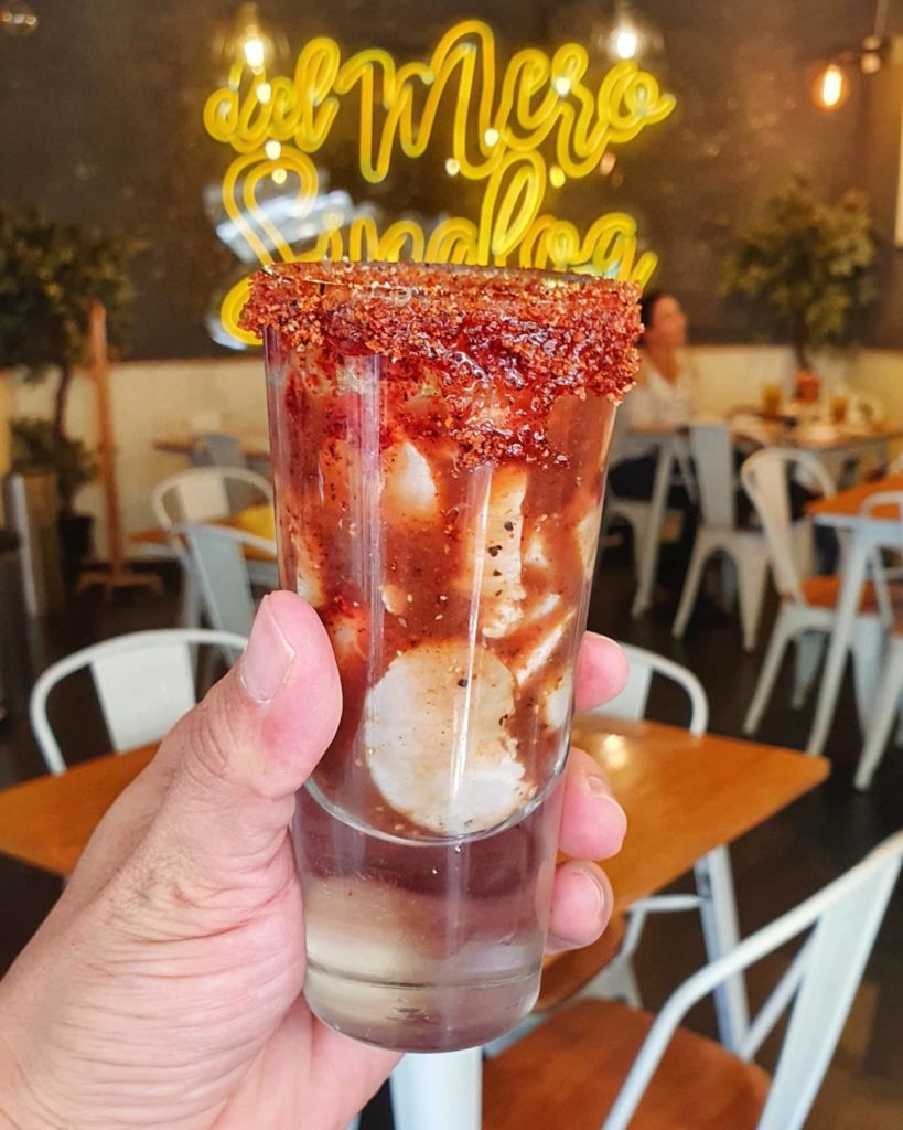 Campobaja no solo presume una de las mejores micheladas con mariscos en la CDMX, sino también una hermosa terraza al aire libre donde disfrutar su exquisita propuesta de cocina de mar. Una de las estrellas de la casa, creación del chef Ezequiel Hernández, es la michelada a base de cerveza y mariscos; lo que la hace tan distintiva es que se prepara con una mezcla especial de la casa – caldo de almeja y ostiones, chile en polvo, salsa de soya macerada y salsa de pescado – , para después incorporarle almejas chocolatas, callo de hacha, pulpo, ostiones y la cerveza de tu preferencia. Te encantará.