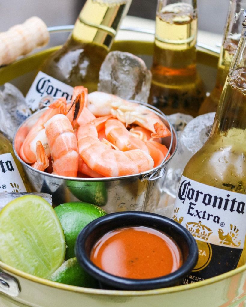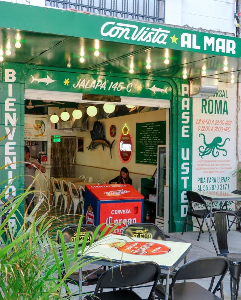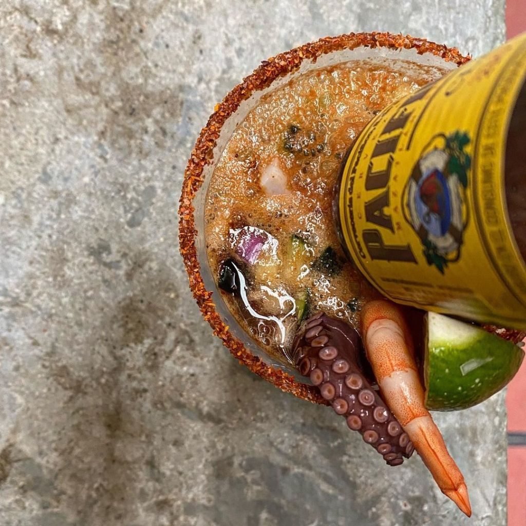 Con Vista Al Mar es uno de los restaurantes de mariscos en la CDMX que comparte una atmósfera casual y de felicidad culinaria. Podrás disfrutar variedad de botanas marisqueras, ceviches, aguachiles y tacos, así como creaciones más originales que privilegian los productos de mar – como sus esquites con tuétano y chicharrón de pulpo -. Si bien su menú no incluye micheladas con mariscos como tal, sí ofrece opciones que vale la pena complementar con mariscos, como su Clamato El Chino – preparado con cerveza, sake y mezcal -.