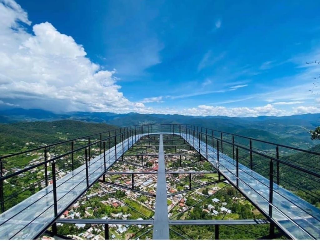 Con una forma de U, el mirador de Ixtlán de Juárez en Oaxaca se extiende sobre un espectacular pasillo de alrededor de 50 metros lineales, cubierto con un cristal estructural de excelente soporte – pero que también da una sensación de vacío -, por lo que visitarlo será una experiencia magnífica para todos aquellos quienes no sufren de vértigo. La capacidad más segura será de 15 personas simultáneamente, para así dar la oportunidad de compartir el recorrido con las mejores vistas de este paraíso indígena. Por si fuera poco, el atractivo turístico contará con una cafetería de cristal localizada por encima del mirador.