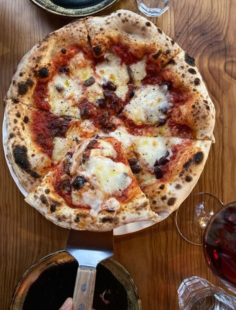 Aquí la pizza es napolitana, de masa suave y flexible, con orillas tostadas pero nunca crujientes (lo cual nos habla de un adecuado tiempo de fermentación). Algo que quizá no es tan fácil de detectar pero que hace toda la diferencia es que la masa se amasa a mano, lo cual implica montones de atención y cuidado: la base ideológica del lugar. La Marinara y la Margherita son buenas opciones para focalizar toda la atención del paladar en la masa maravillosa, pero también tienen opciones más complejas como la pizza asiaghese con anchoas, y la pizza blanca con tartufo negro, ricotta, mozzarella y jamón cocido.