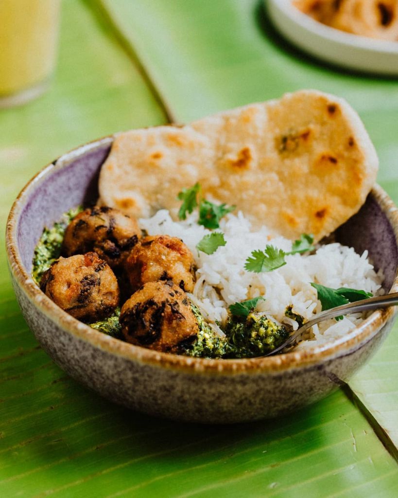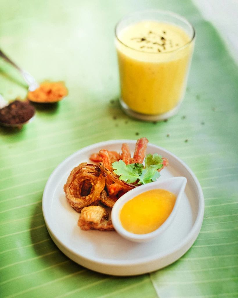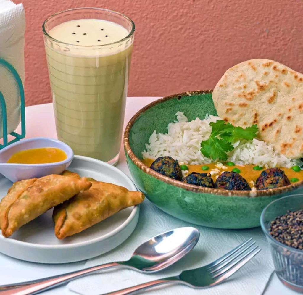 Al momento de pedir, podrás elegir entre cinco tipos de currys distintos, cada uno acompañado de arroz basmati y pan naan. Si bien todo es delicioso, te recomendamos probar su curry mutter, elaborado con jitomate, nuez de la india, koftas de espinaca, tofu y chícharos. No te olvides de acompañarlo de alguna de sus cervezas artesanales o lassis a base de leche de coco, así como de sus samosas de verduras especiadas con chutney de mango agridulce.