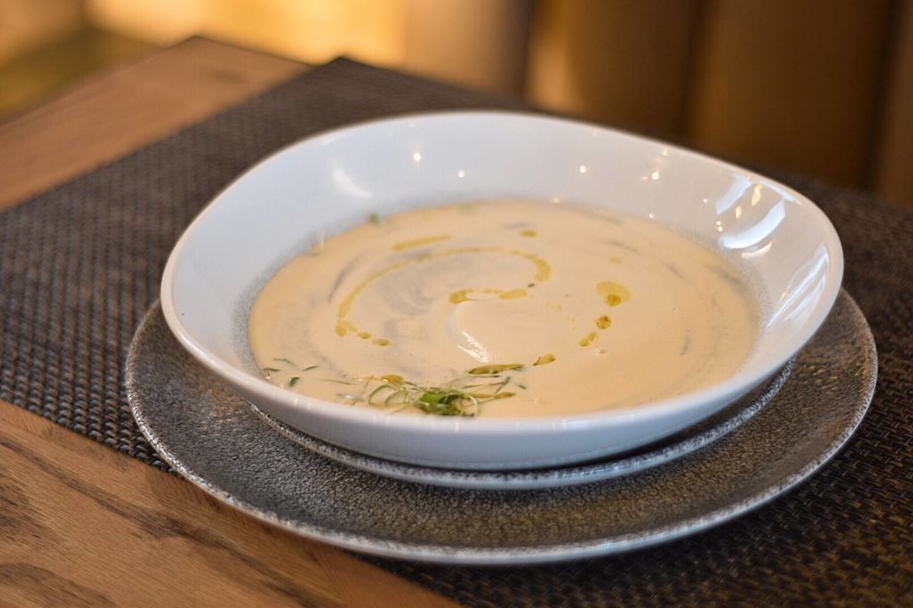 Para comenzar, te darán la bienvenida con un pan calientito, acompañado con mantequilla y verduras encurtidas. Para la entrada, te sugerimos que pruebes la crema de coliflor con queso de cabra cenizo o que compartas los tacos de pato marinado, con tortilla frita de harina y salsa hoisin para acompañar.