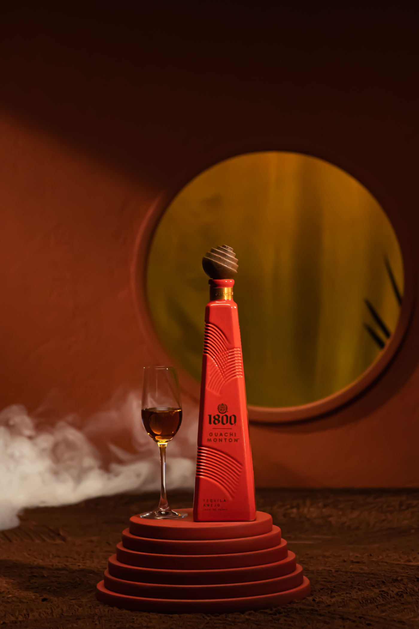 Debido a esta fascinante historia, la nueva edición especial de Tequila 1800 Guachimontón busca rendir homenaje a esta civilización con una botella que destaca tanto en sabor como en su presentación, donde además busca reconocer el dominio del cultivo y el uso de la arcilla, tierra que vio nacer sus pirámides y que hoy en día alimenta a los agaves. Es por ello que en su botella sobresalen relieves que hacen alusión a los monumentos cilíndricos de aquella población y que reflejan los ciclos del tiempo y su color rojo representa la arcilla de los suelos volcánicos.