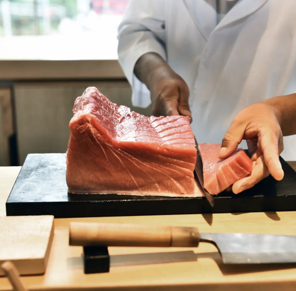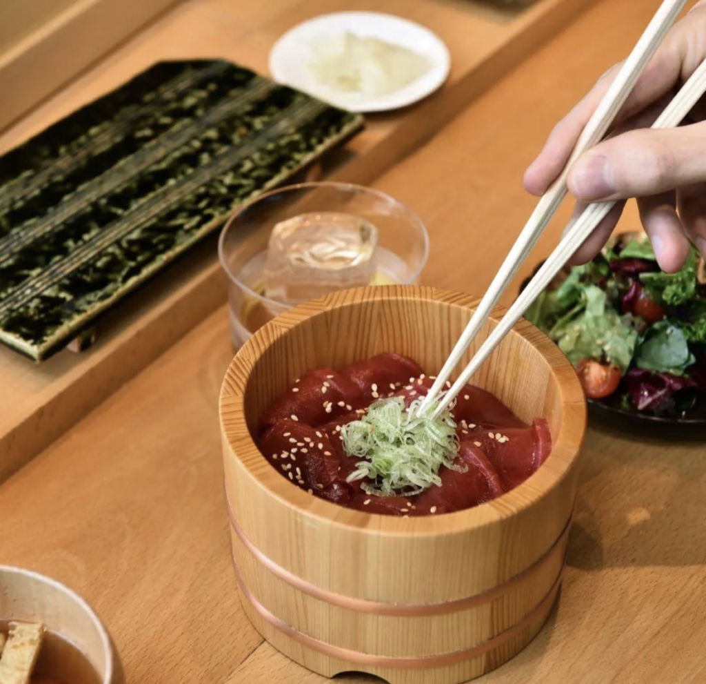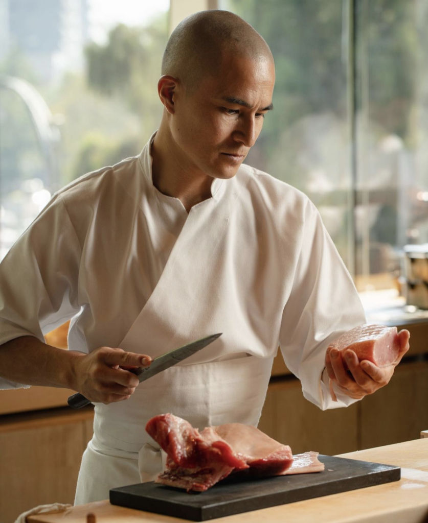 En Tatsugoro la comida es parte de la experiencia del omakase, ya que cada plato se prepara de manera delicada frente al comensal, mientras este disfruta las bellas postales de la diana mientras va cayendo la tarde. Además, su técnica Edomae –que es un método de conservación de alimentos a base de vinagre y sal– hace que cada uno de sus platos sea único.
