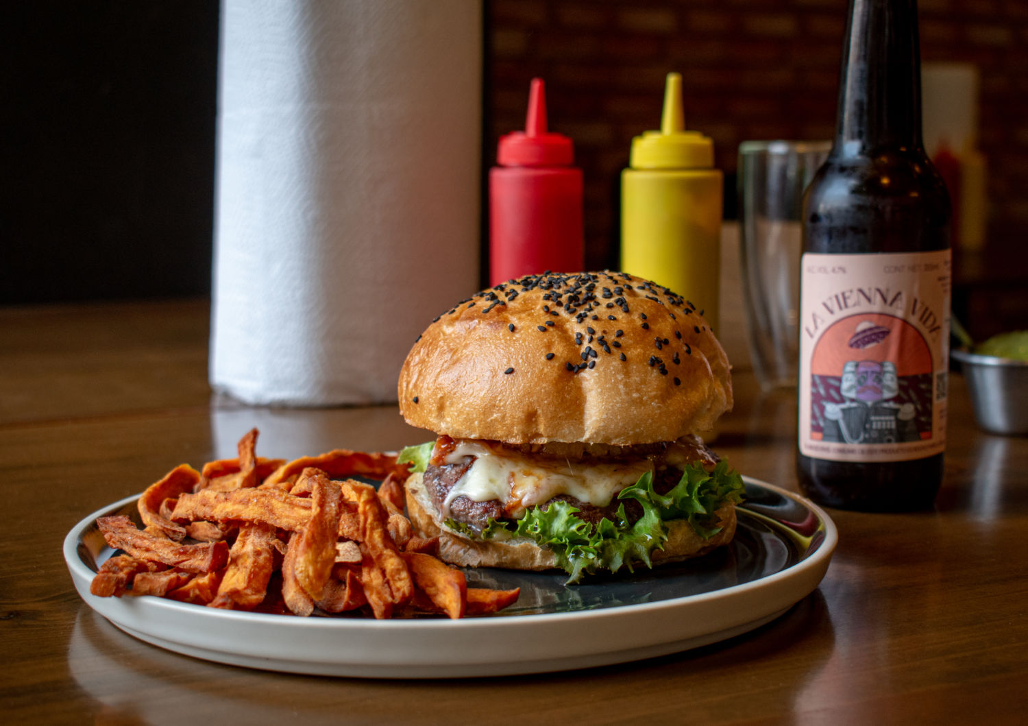 En Open House Burgers, es difícil decir cuál es la estrella. Sin duda, es casi criminal ir y no probar la hamburguesa Western, ganadora del Burgermaster Mx 2019. Se trata de una receta más bien clásica con carne de res, aros de cebolla, tocino, queso americano y salsa BBQ. Pero si vienes con un antojo más ‘monchoso’, las hamburguesas rellenas serán tu perdición. Hay varias opciones, desde la Burger Alemana —con carne y salchicha de res, rellena de queso gouda— y la Burger French —carne de res rellena de queso gruyere y tocino glaseado— hasta la Burger Chilango —rellena de carne al pastor y queso oaxaca—.