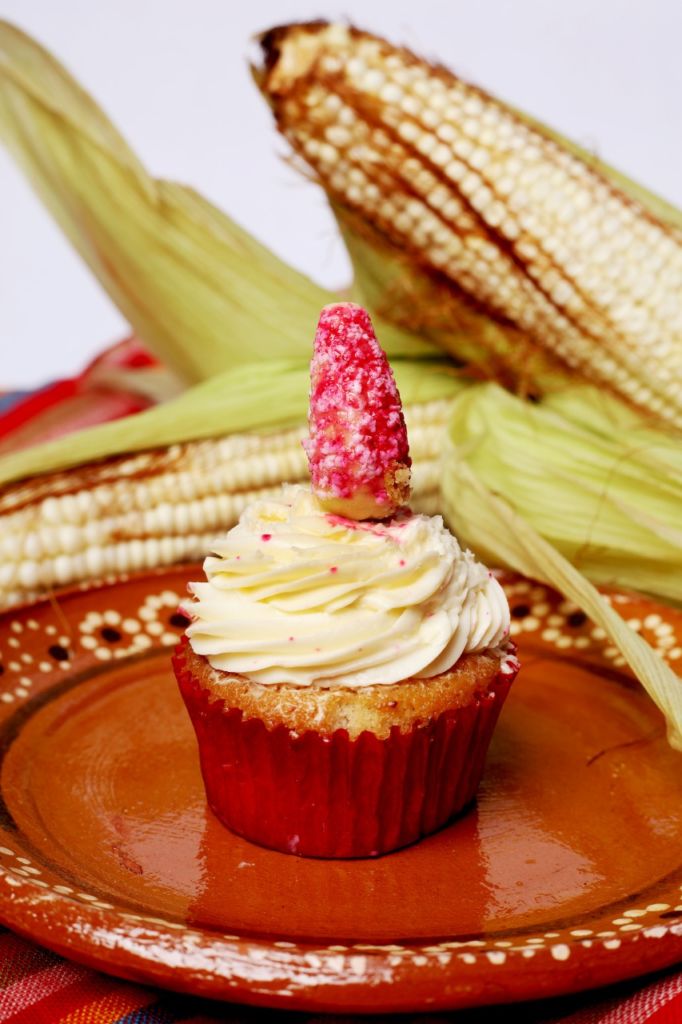 Si lo que quieres es un postre más tradicional, prueba su cupcake de panqué de elote con betún de queso, bañado con rompope y decorado con un pequeño elotito de fondant – su decoración es tan precisa que hasta pareciera estar cubierto de queso y chile –. Es un tierno y exquisito giro al típico pan de elote, seguro te encantará.