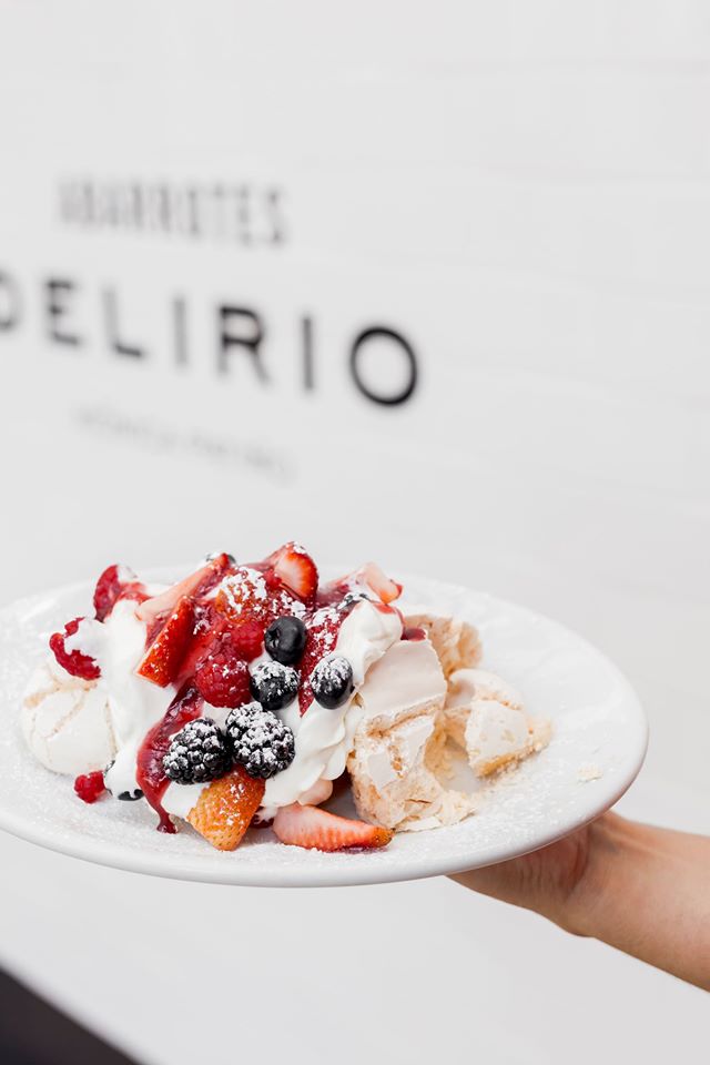 La pavlova con crema batida y frutos rojos de Delirio se ha convertido en uno de los platillos favoritos de todos sus visitantes. La preparan con frutos rojos, mermelada, crema batida y un rico merengue que te llevará directo a las nubes. Si no la has probado, definitivamente, debes hacer algo al respecto.