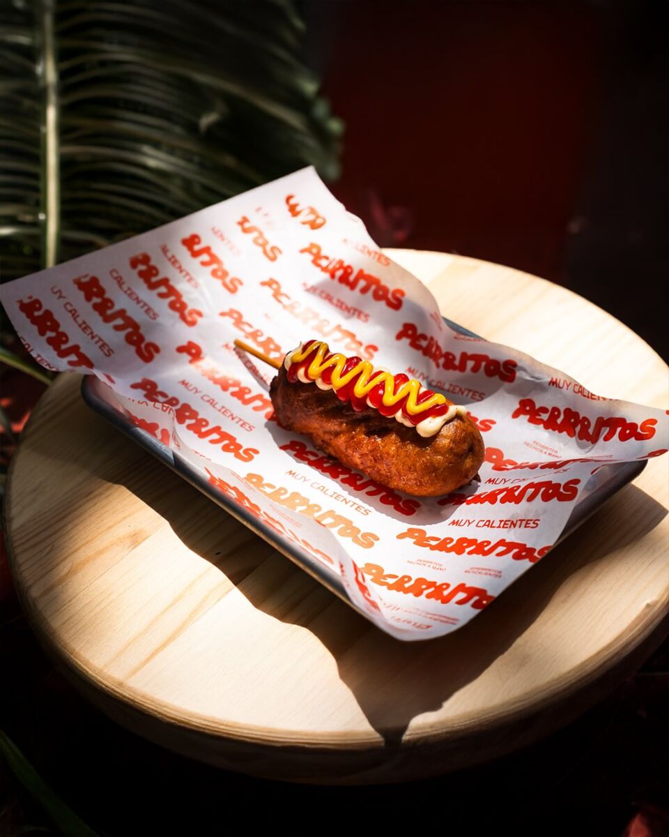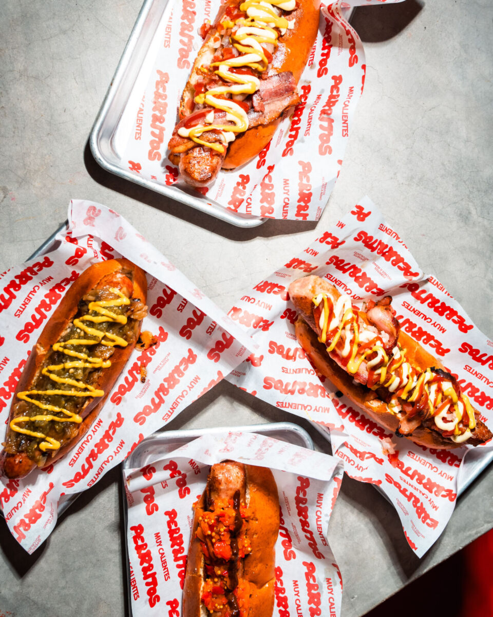 El local de Perrritos Muy Calientes abrió hace apenas unos meses, pero ya desde antes el proyecto existía a partir de pop-ups y colaboraciones con otros restaurantes. Y es que Perrritos tiene un caracter muy comunitario. Detrás de la marca se encuentran Carlos Landgrave, Adrián Uribe y Janette López. Ellos apostaron por cocinar su idea con la misma filosofía que las salchichas: tener paciencia, pasión y divertirse. Es por eso que prefirieron ir lento que sacrificar su visión. La espera dio frutos en el local de la Roma, donde además de servir hot dogs también reciben diseñadores, artistas, músicos y chefs invitados para seguir nutriendo a la comunidad creativa.