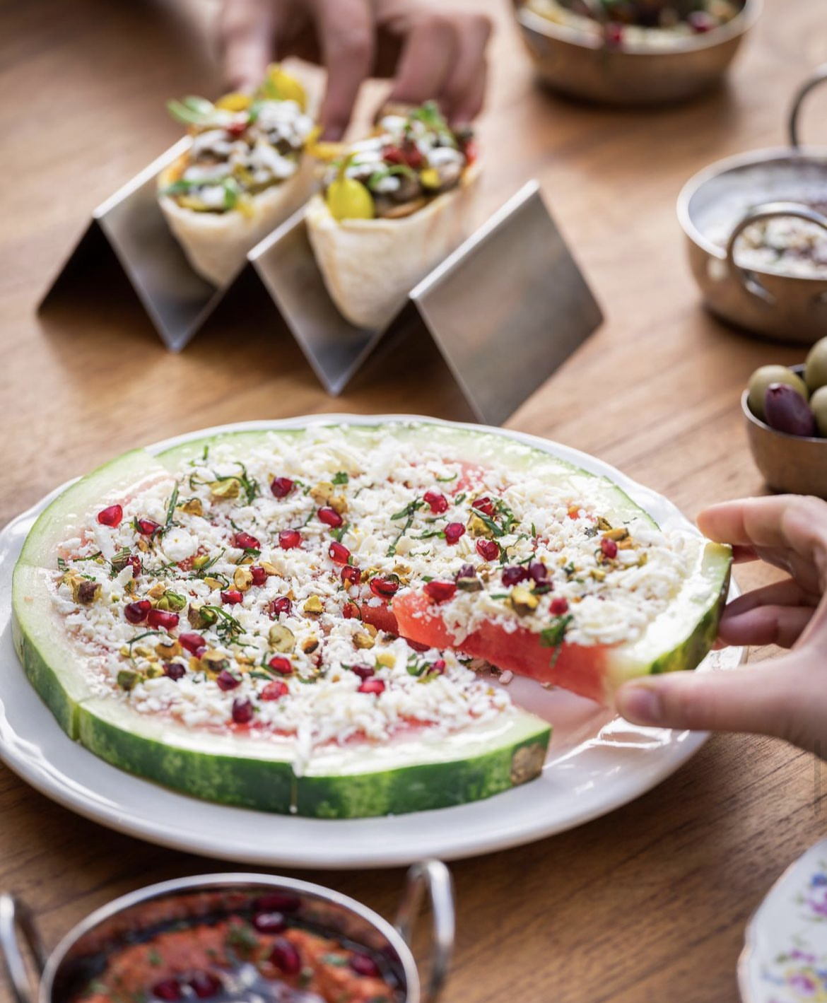 Por las mañanas disfruta un exquisito brunch con barra de postres, mariscos, panes de masa madre, emparedados y más. Huevos a la cazuela, tabule, hummus y pizza de sandía, son algunos de los platos imperdibles de su variada carta. Los ceviches y el pollo frito marroqui también son de los favoritos.