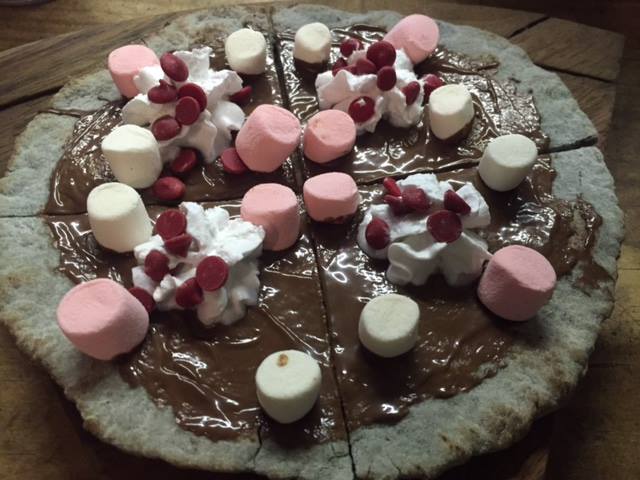 Trattoria Giacovanni– Pizza de Nutella con malvaviscos flameados