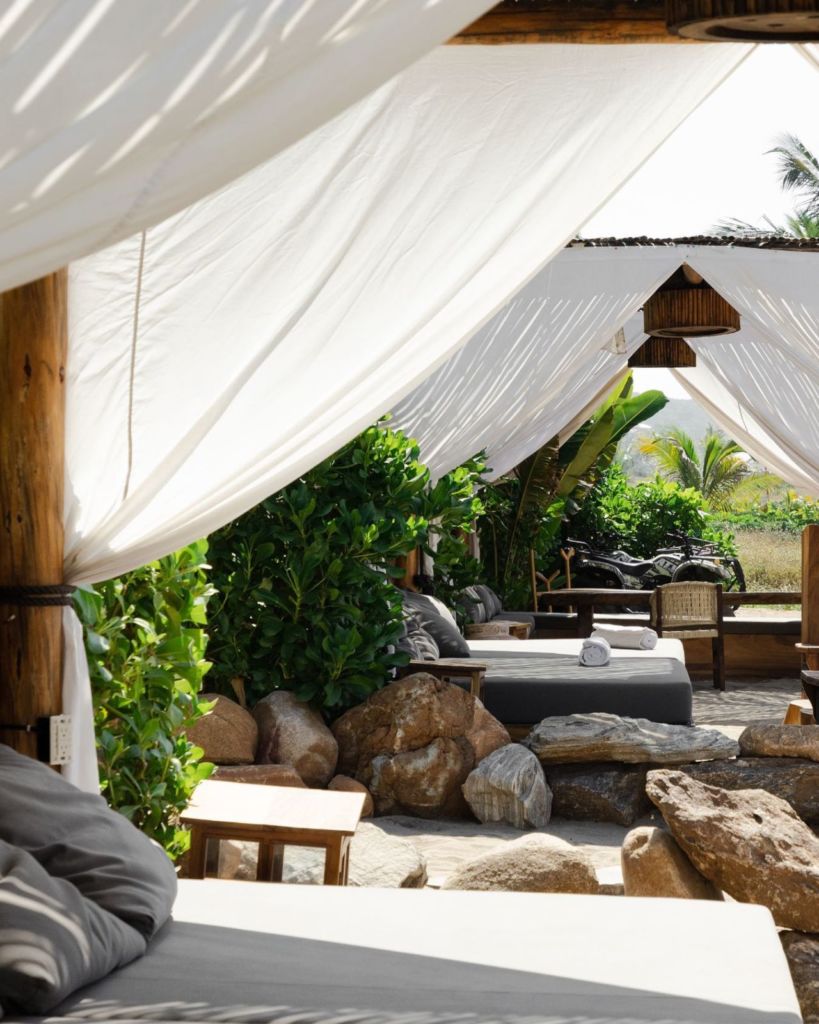 Cada una de las habitaciones de Casa Joseph, cuenta con un interiorismo que te hará sentir una conexión entre el entorno natural y los elementos decorativos de la misma. Un plus de este hotel secreto frente a la playa de Zicatela, es que cuenta con amenidades que otros no tienen, por ejemplo: sudaderas, sombreros, bolsas de playa y sandalias para que salgas de tu habitación sin preocuparte por nada. Además de sesiones de yoga, clases de surf, excursiones a caballo, spa, degustaciones de mezcal, paseos en moto o bicicleta y noches de música en vivo.