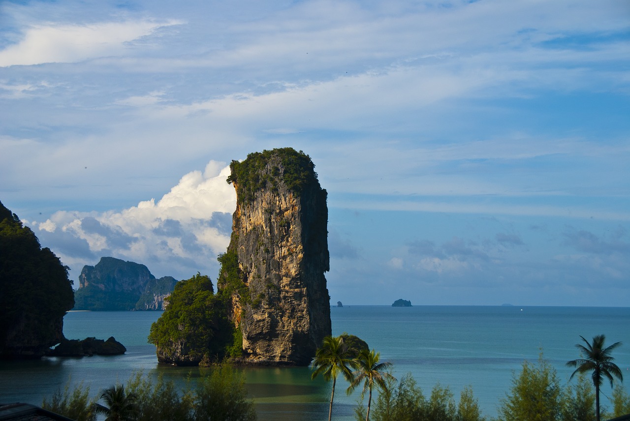 Viajar a Tailandia no solo es sinónimo de descubrir templos y aventurarte en su extraordinaria gastronomía, también te permite disfrutar de unos días maravillosos de playa, si es que visitas la zona de Krabi. Este lugar se caracteriza por sus paisajes maravillosos y por escenarios como la pequeña península de Railay, que se encuentra rodeada de acantilados –lo que hace que solo puedas acceder por el mar–. La jungla se funde con el mar de color turquesa y el resultado es excepcional.
