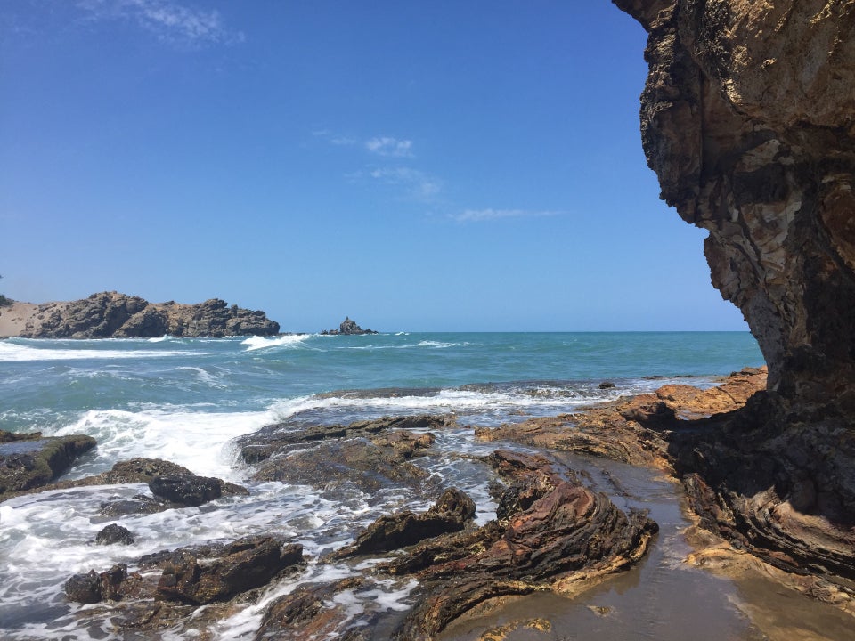 Esta playa de aguas azul celeste le debe su nombre a sus increíbles formaciones rocosas, las cuales hacen que se formen albercas naturales, permitiendo a los turistas disfrutar sus cálidas aguas. Este lugar es conocido por sus hermosos atardeceres rojizos, por sus bungalows y sus cabañas ecológicas, en las cuales te desconectarás de todo, pasando unas agradables vacaciones libres de estrés.