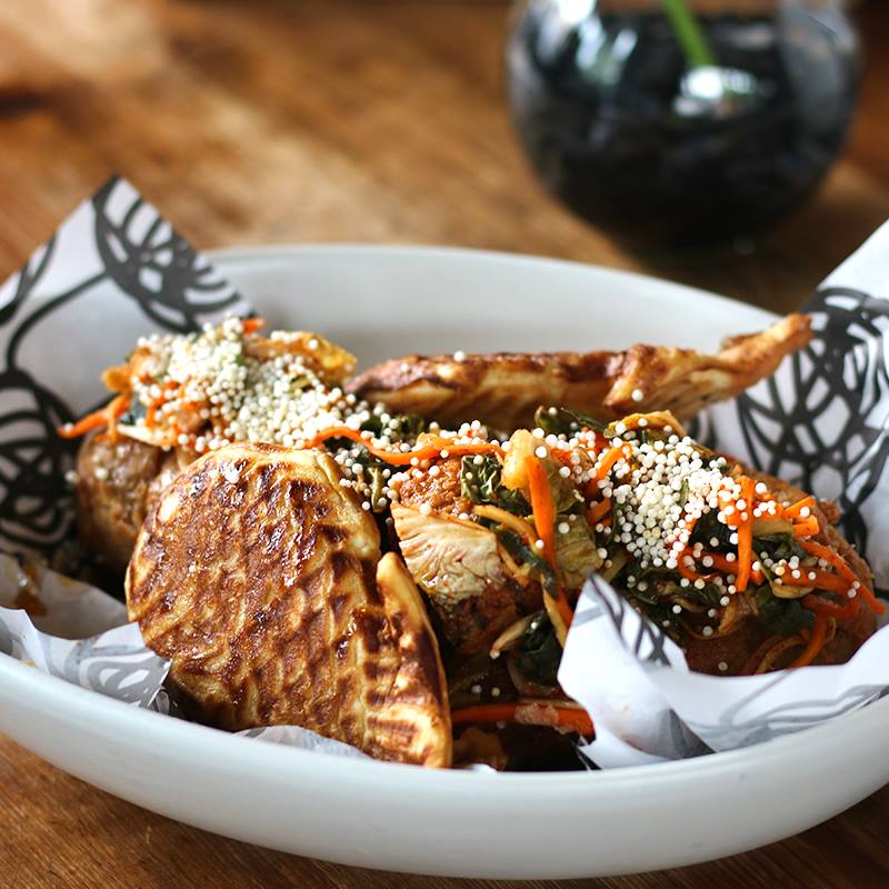 Sus Chicken and Waffles son elaborados con un extraordinario pollo crujiente, waffles coreanos y miel de agave, un imperdible durante tu visita. Este restaurante del Chef Daniel Ovadía prepara cocina fusión con tintes orientales, americanos y mexicanos, por lo que cada uno de sus platillos tienen un sabor único y delicioso.