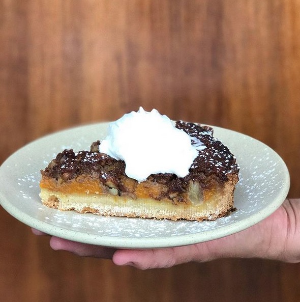 Este lugar, ubicado en la colonia Roma Norte, es famoso por ofrecer sandwiches exquisitos, pero también por su variedad de postres que cambia cada temporada. En esta época, dentro de se menú destaca un delicioso pay de calabaza y pecanas, una maravilla dulce con una textura increíble.