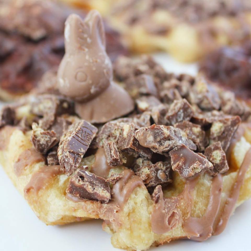 Un waffle suave, un drizzle de chocolate, unos trozos de chocolate con arroz inflado y una cabecita de conejito son los elementos que componen este maravilloso postre que es ideal para cuando quieres regalar un detalle delicioso. Tienen cinco locales en puntos clave de la ciudad que podrás encontrar en su página web.