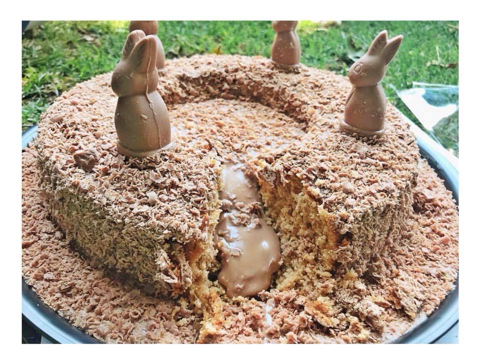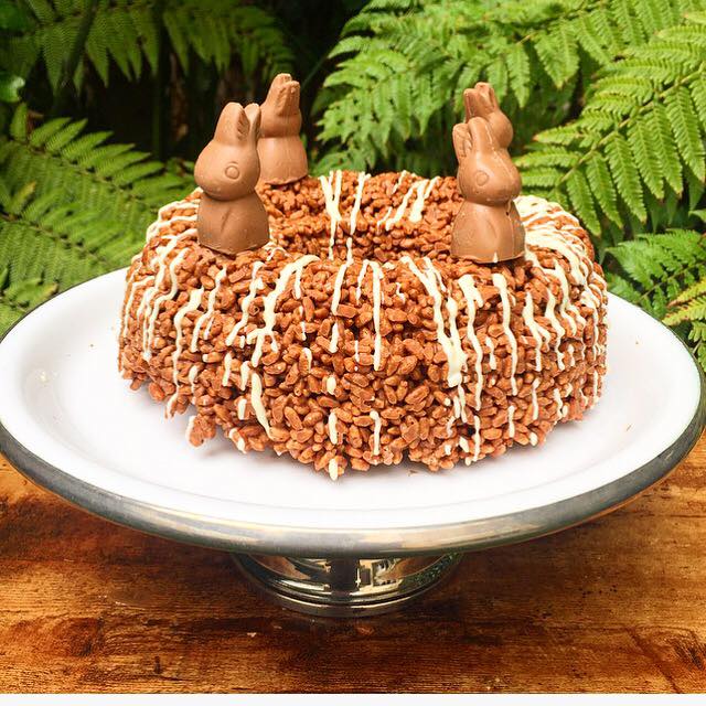 El arroz inflado cubierto en chocolate que tanto disfrutabas de niño “pegado” con cremoso chocolate y con cuatro conejitos que probablemente serán peleados por quienes coman la rosca.