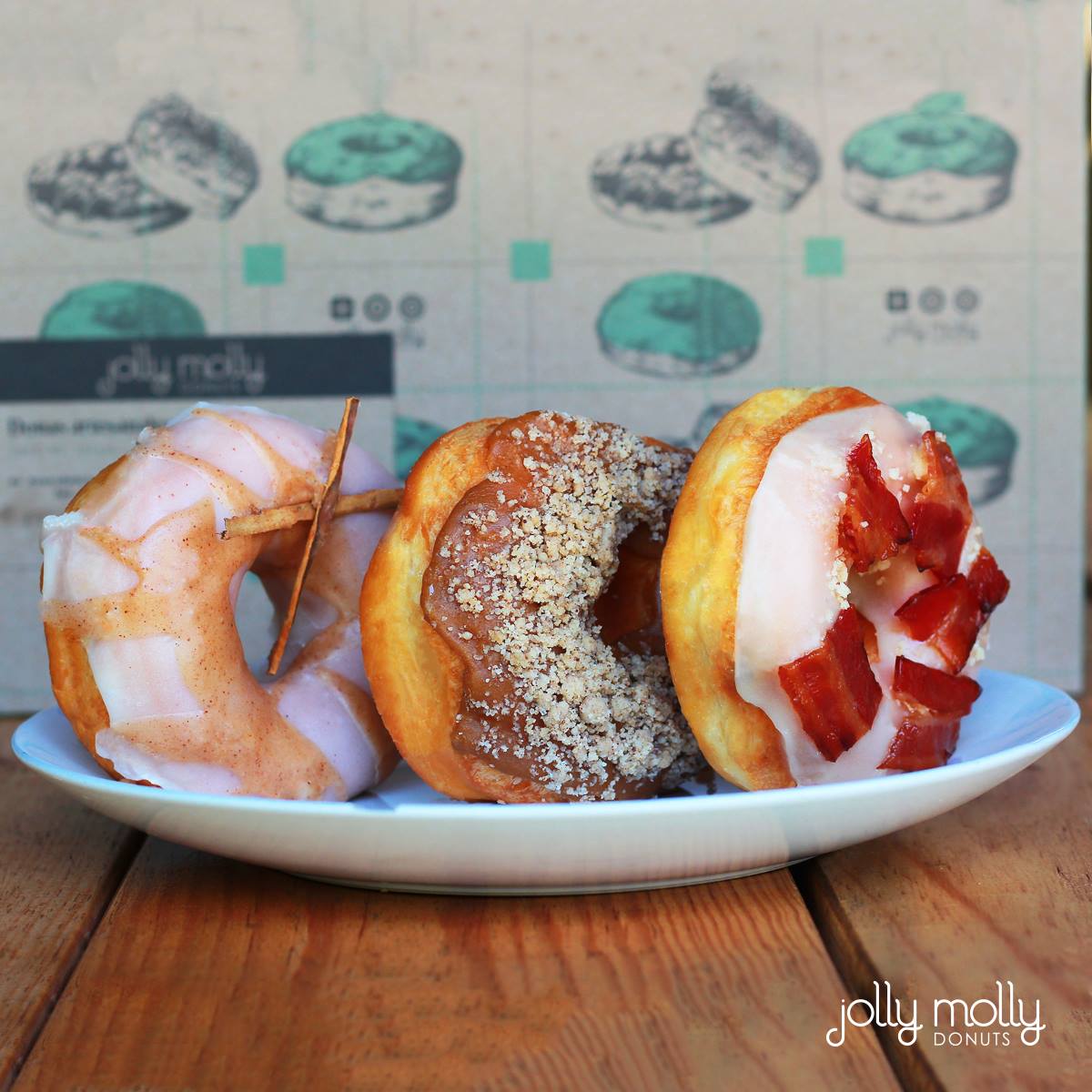 ¡Glass de almendras y nueces! ¡Glaseada con tocino! ¡Cotton Candy! Desde el momento en que ves por primera vez las donas de Jolly Molly lo único que piensas es: “¡Debo tomar una foto ahora!”, y es que además de deliciosas, las bellas presentaciones te enamoran por completo y vas a querer probar todas, te recomendamos que asistas con amigos para que puedan compartir y disfruten de varios sabores.