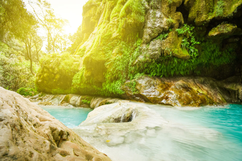 El lugar cuenta con un encanto romántico y parecido al de un cuento de hadas, esto debido a que alberga aguas de preciosas tonalidades turquesas, al igual que un entorno de vegetación endémica que invita a quedarse por horas admirando su diversidad. Su nombre significa ‘en medio de las aguas‘, con lo que se puede anticipar la belleza natural que irradia cada uno de sus rincones.