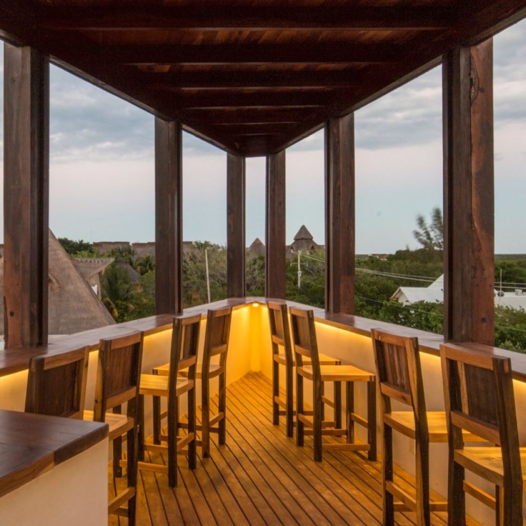Por las noches el mood de este hotel se torna más romántico y casual, su rooftop con vista a la isla te permitirá admirar las estrellas y disfrutar coctelería de autor con ingredientes locales y fermentos preparados en casa. En la parte de cocina el menú está enfocado a platillos tradicionales de la cocina mexicana, los cuales se preparan al momento y además apoyan el comercio local